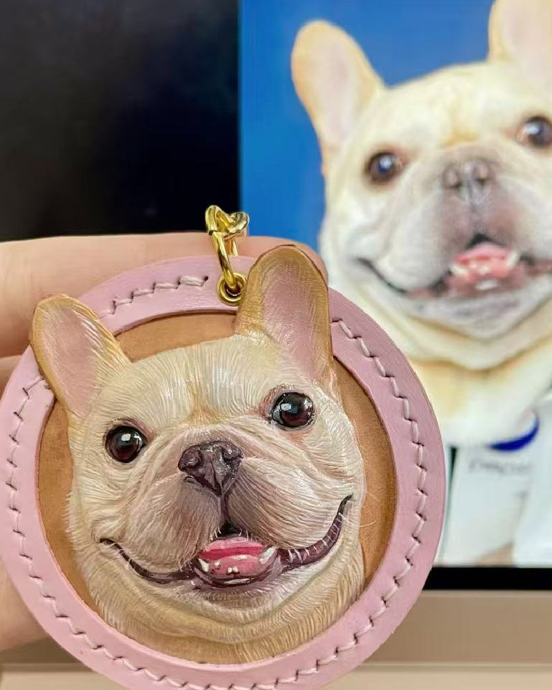 A Portrait in Cowhide Leather, A Companion for Life. Send us a beloved photo. Our artisan will then meticulously hand-carve and paint your pet’s likeness onto premium Argentine calfskin, framed with elegant Italian cowhide leather. More than an ID tag, it’s a wearable heirloom—a timeless tribute that keeps them close, whether on their collar, your bag, or in your heart.